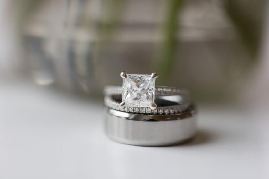 Nearly two years later, just days before their anniversary, Brandon planned a thoughtful surprise at Duke Gardens. What was meant to be a simple walk turned into a beautifully orchestrated proposal. He arranged for a professional photographer to capture the moment and included meaningful details like music, flowers, and a custom sign he designed himself. As an engineer, Brandon created a truly unique element—carving “Will you marry me?” into granite, a piece that would later become part of their home.